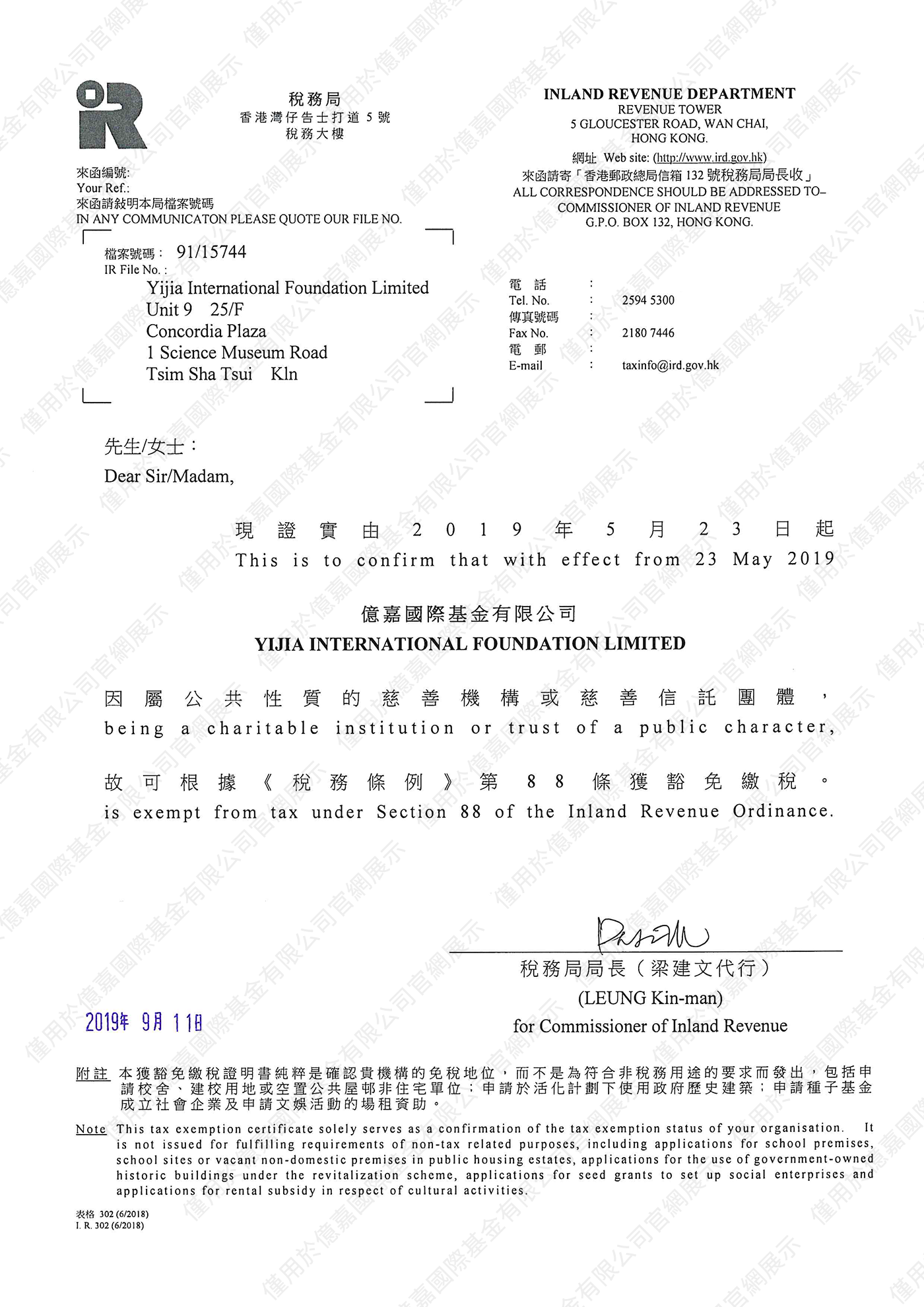 Founded in 2019, Yijia International Foundation Limited is a public charitable organization registered in Hong Kong and enjoys tax-exempt status under Section 88 of the Inland Revenue Ordinance.